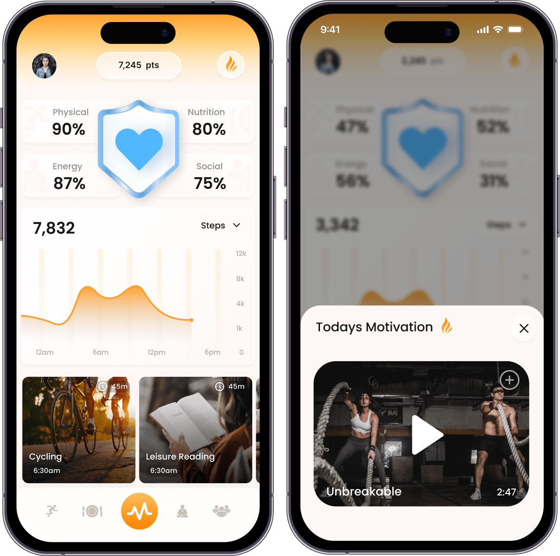 Your health isn’t one-dimensional. Spark Companion connects physical, nutrition, energy, and social wellness into one unified experience, helping you understand how each area influences the others over time.